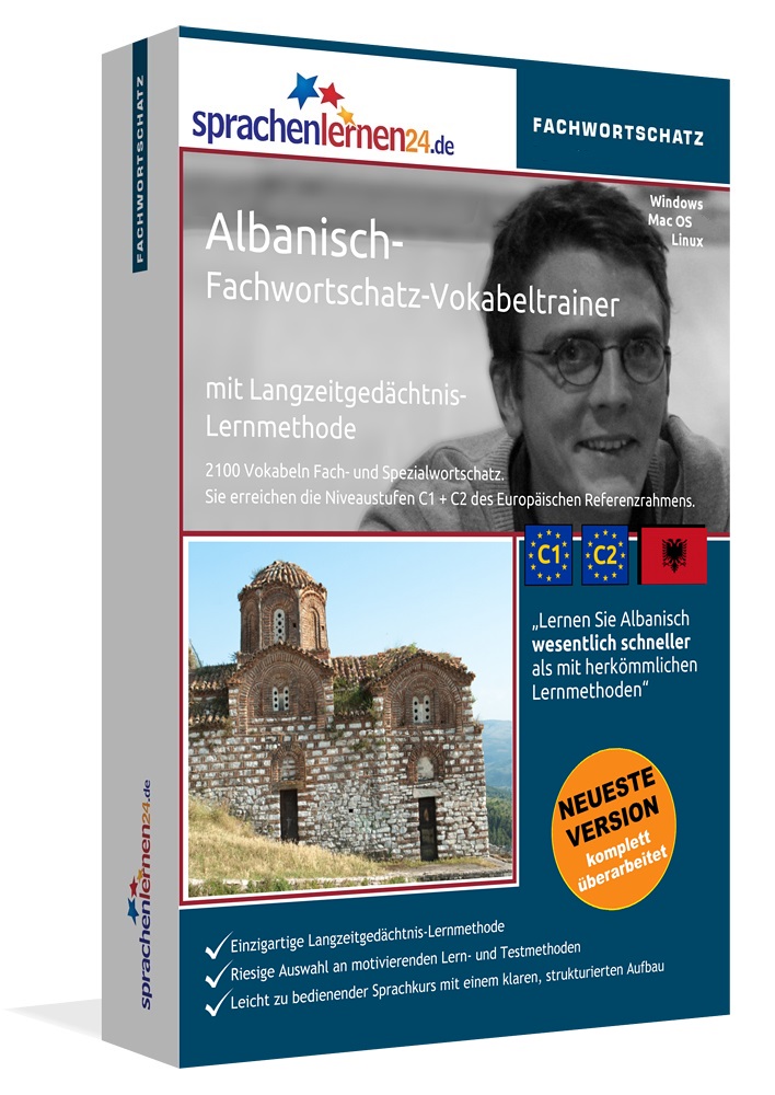 Lernen Sie Albanisch schneller als mit herkömmlichen Lernmethoden! Den Multimedia Sprachkurs Albanisch gibt es in vier verschiedenen Ausführungen: für Anfänger, für Fortgeschrittene, für den Urlaub und für Kinder. Desweiteren gibt es einen Business Sprachkurs und zahlreiche Wortschatz Vokabeltrainer zu verschiedenen Themenbereichen. Die optisch ansprechenden Lerneinheiten sind praxisnah und helfen Ihnen sich in kurzer Zeit auf Albanisch unterhalten zu können.